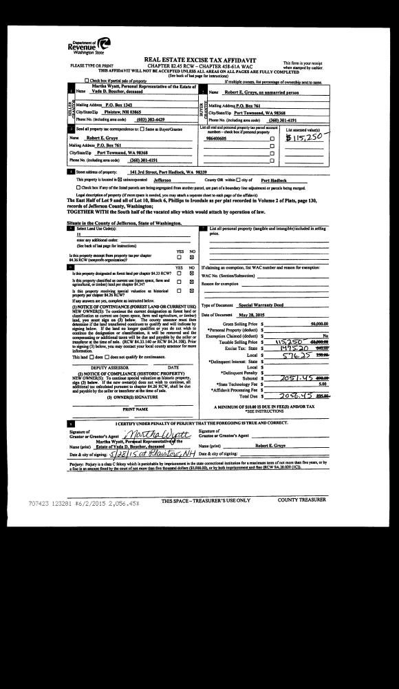 | 1 | 10/14/2015 | SWD | Statutory Warranty Deed | ROBERT K ALEXANDER | ALEXANDER FAMILY TRUST | | | | 125368 | |