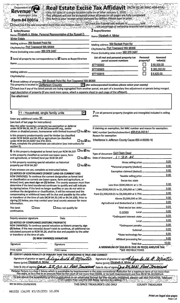 | Mailing Address: | 50 WALKER ST QUILCENE, WA 98376-7503 | % Ownership: | 100.0000000000% |