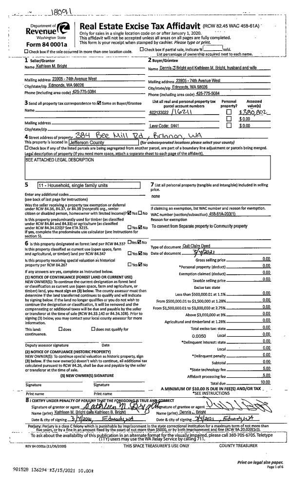 | Mailing Address: | 50 WALKER ST QUILCENE, WA 98376-7503 | % Ownership: | 100.0000000000% |