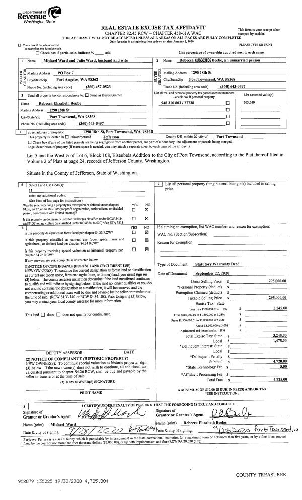 | Mailing Address: | 293154 HWY 101 QUILCENE, WA 98376 | % Ownership: | 100.0000000000% |
