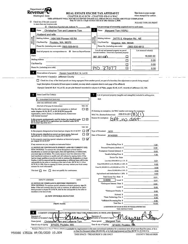 | Address: | 293464 HIGHWAY 101 QUILCENE, WA 98376 | Mapsco: | 176/067 |