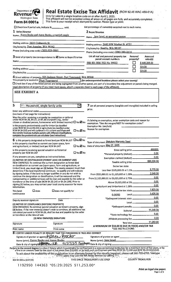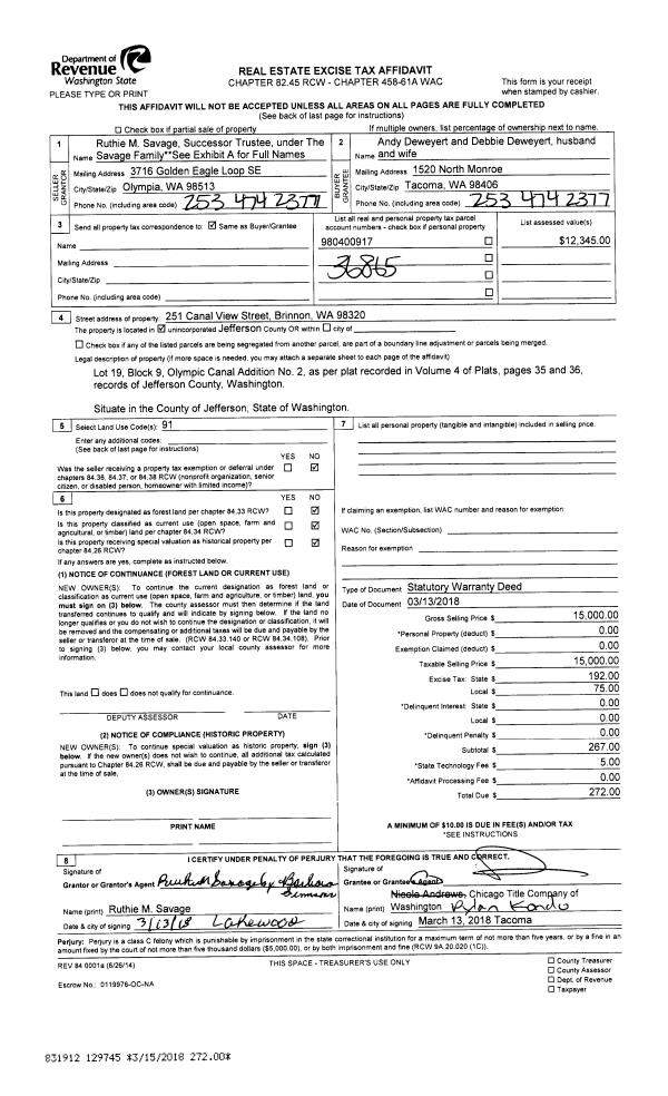 | 1 | 04/17/2019 | SWD | Statutory Warranty Deed | D TIM BATEY | JOLENE KIEFFER | | | $135,000.00 | 132150 | |