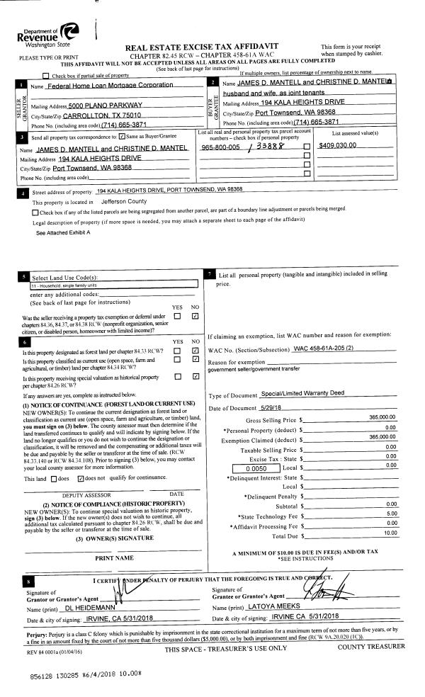 | 2 | 08/07/2018 | SWD | Statutory Warranty Deed | JERAL & DEBORAH ELLINGSWORTH | PETER L TENNIGKEIT | | | $56,000.00 | 130795 | |