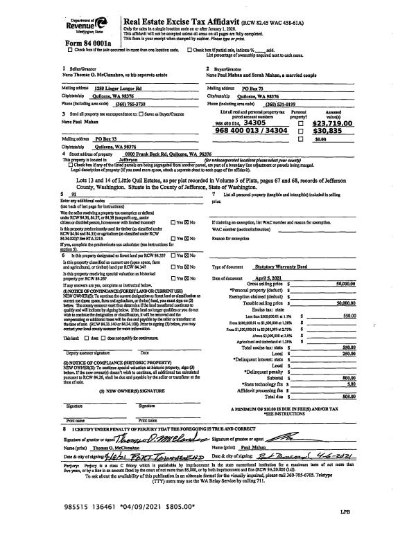 | Mailing Address: | 13800 CENTER RD QUILCENE, WA 98376-9503 | % Ownership: | 100.0000000000% |