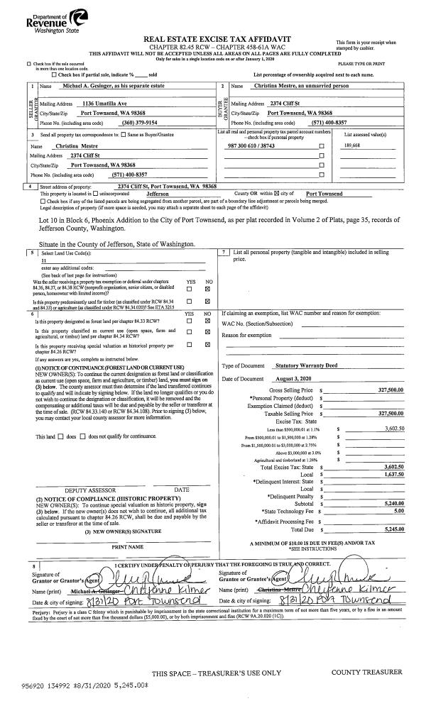 | 1 | 04/05/2021 | SWD | Statutory Warranty Deed | RICHARD L HUNT JR | ERIC J BOYER | | | $545,000.00 | 136462 | |