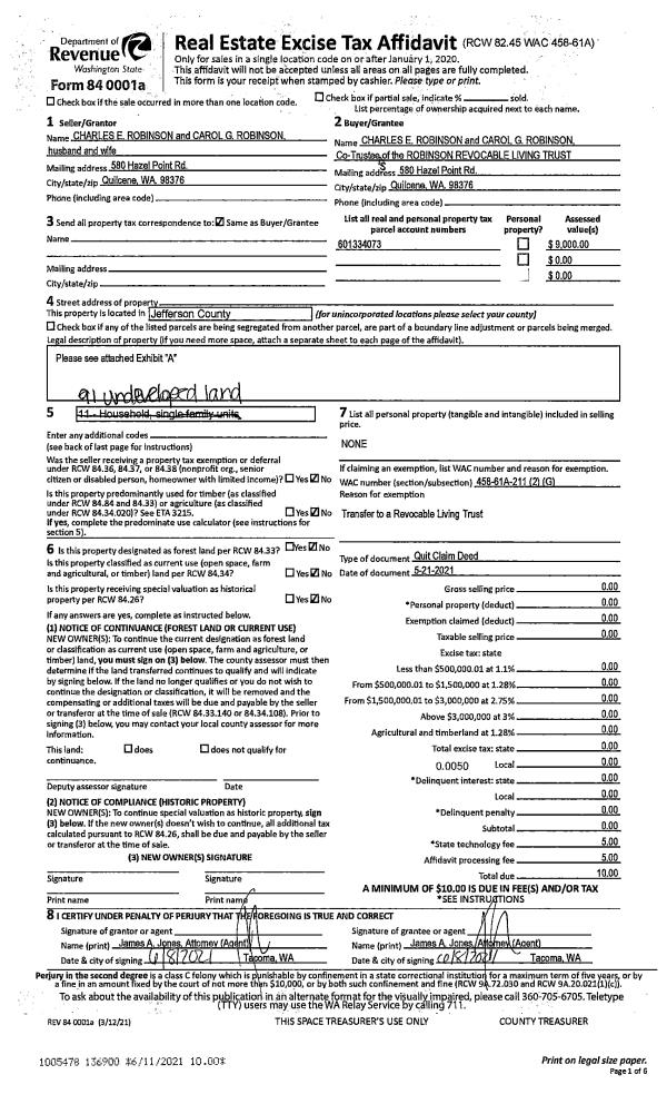 | 1 | 09/01/2021 | QCD | Quit Claim Deed | | | | | | 138137 | |