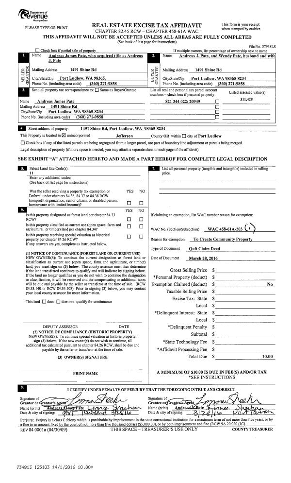 | Mailing Address: | PO BOX 354 QUILCENE, WA 98376-0354 | % Ownership: | 100.0000000000% |