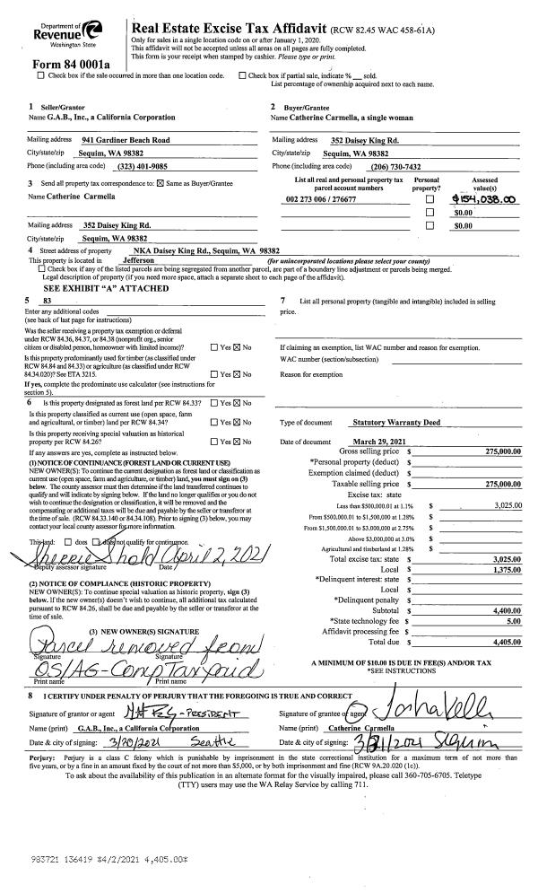 | 1 | 07/27/2021 | SWD | Statutory Warranty Deed | NANCY B STICKNEY | ERIC RHODES | | | $425,000.00 | 137340 | |