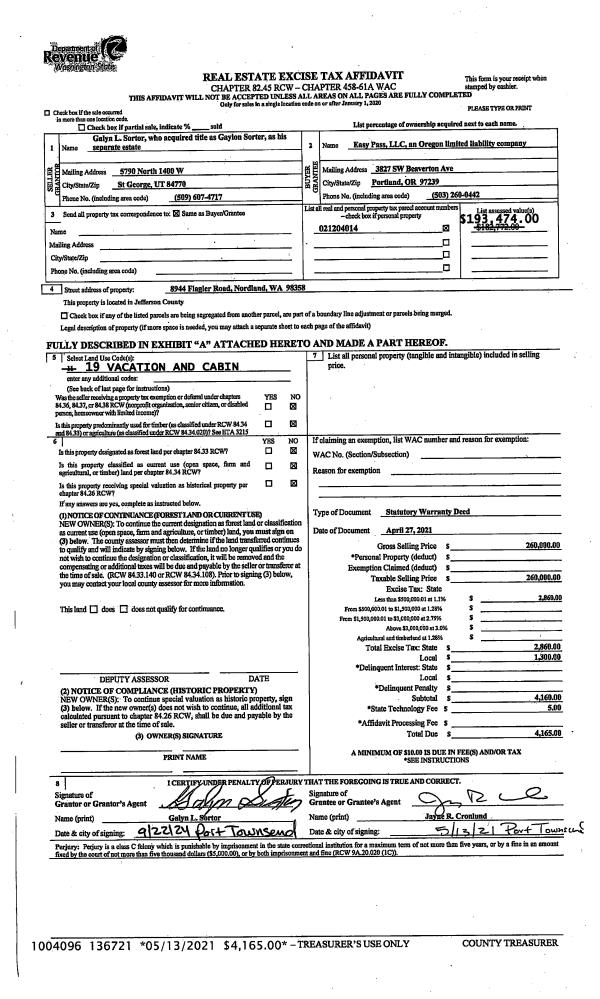 | Mailing Address: | JAMES M MC CULLOUGH PO BOX 41 QUILCENE, WA 98376-0041 | % Ownership: | 100.0000000000% |