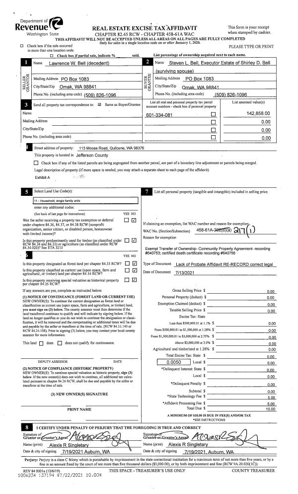 | 2 | 10/19/2021 | SWD | Statutory Warranty Deed | AMERICAN TIMBER RESOURCE LLC | GENESSA KRASNOW & REVEL WOLF | | | $245,000.00 | 137939 | |