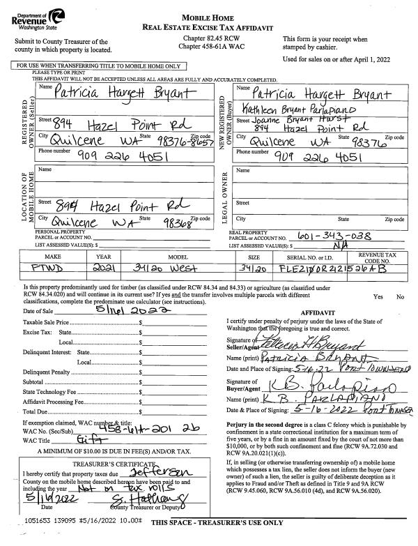 | Mailing Address: | A WA LIMITED LIABILITY CO P O BOX 428 PORT ANGELES, WA 98362-0428 | % Ownership: | 100.0000000000% |