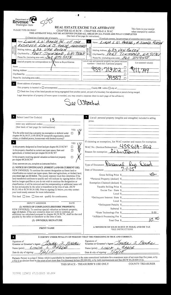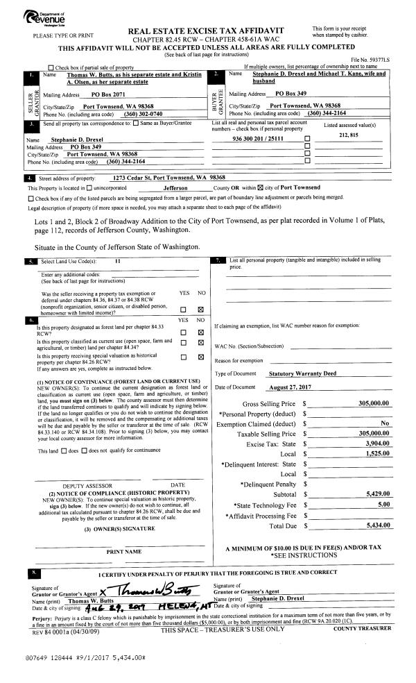 | 2 | 10/14/2015 | SWD | Statutory Warranty Deed | ROBERT K ALEXANDER | ALEXANDER FAMILY TRUST | | | | 125370 | |