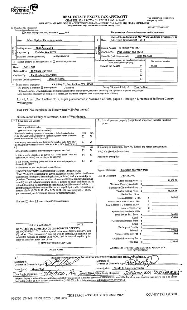 | 1 | 2555-6585Q | Commercial/Res. Frtg on US101 | 1.5000 | 65340.00 | 0.00 | 0.00 | 0.00 | $223,350 | $0 |