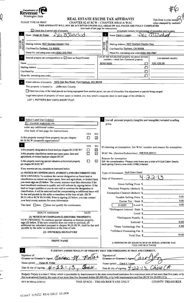 | 2 | 2560-1375S | Quilcene Bldg Sites >1 Acre | 1.0000 | 43560.00 | 0.00 | 0.00 | 1.00 | $46,000 | $186 |