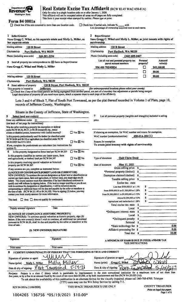 | 6 | 11/02/2000 | SWD | Statutory Warranty Deed | QUILCENE INN INC | EMMERSON, RICK P/KATHLEEN E | 0 | 0 | $177,272.00 | 90927 | 0 |
