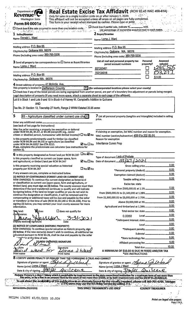 | Mailing Address: | MARY M WHITE GESE PO BOX 483 QUILCENE, WA 98376-0483 | % Ownership: | 100.0000000000% |