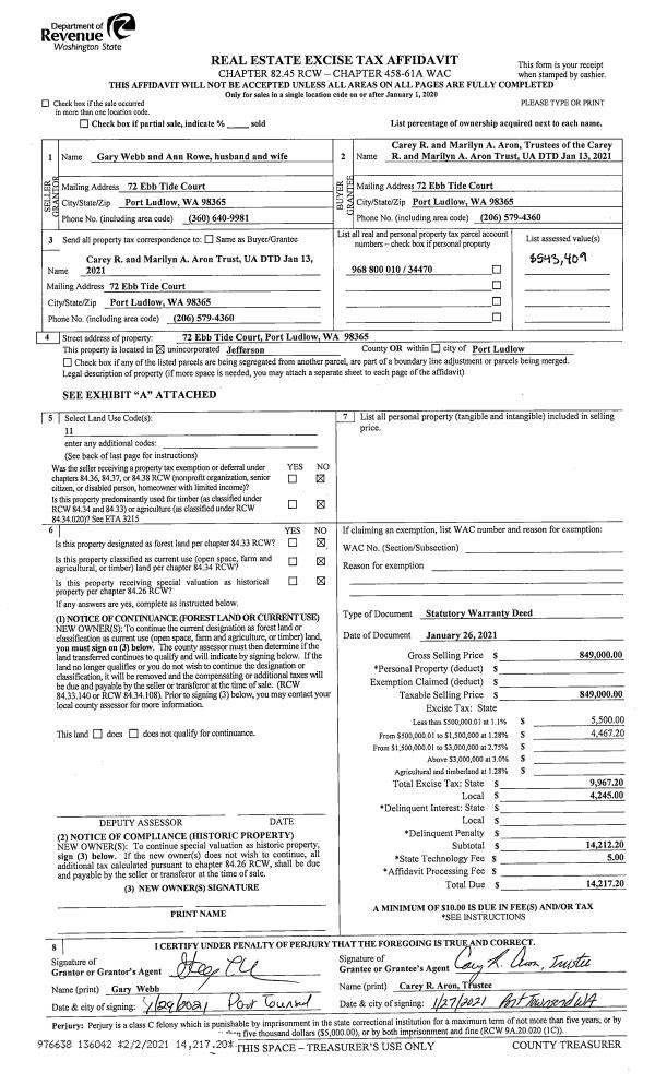 | 1 | 2570-1353S | Avg/Good View Sites of Quilcene Bay 1+/- Acre | 0.0000 | 0.00 | 0.00 | 0.00 | 1.00 | $98,900 | $0 |