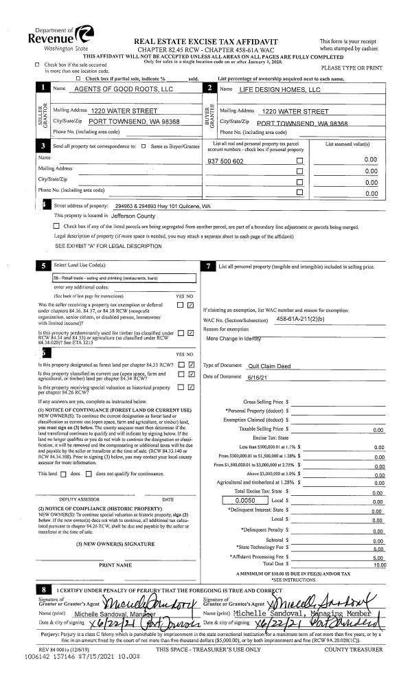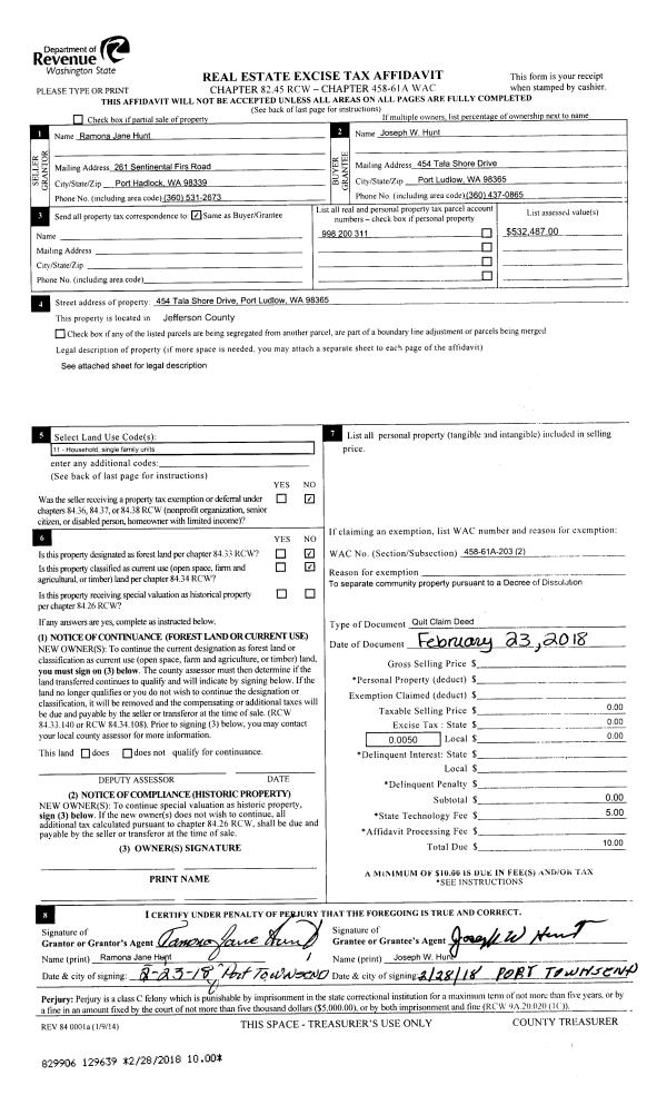 | Mailing Address: | ASHLEY R HUNT 564 COURGAR RUN RD QUILCENE, WA 98376-7538 | % Ownership: | 100.0000000000% |