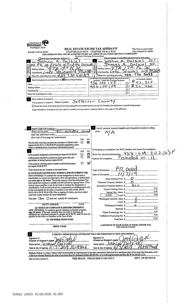 | Mailing Address: | KIMBERLY A AIELLO KEVIN W AMO 44 HIDDEN VALLEY RD QUILCENE, WA 98376 | % Ownership: | 100.0000000000% |