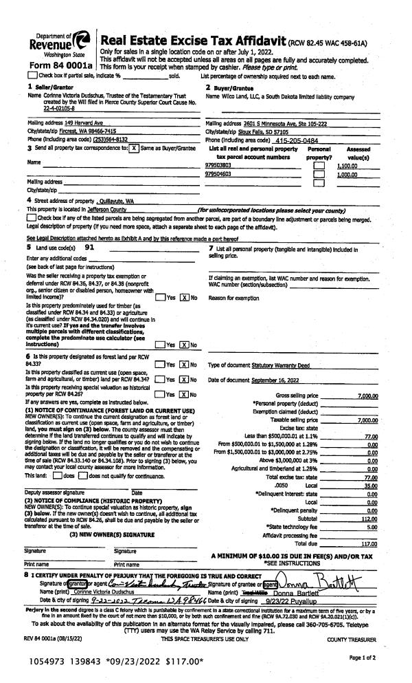 | 1 | 02/28/2023 | QCD | Quit Claim Deed | FLORENCE BRANDEBERRY | NANCY CLAUSON | | | | 143777 | RERCD 140640/143424 |