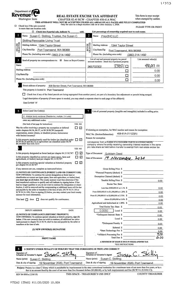 | 1 | 12/21/2020 | SWD | Statutory Warranty Deed | STANLEY O PETERSON | PETERSON FOREST ENTERPRISES LLC | | | | 135835 | |