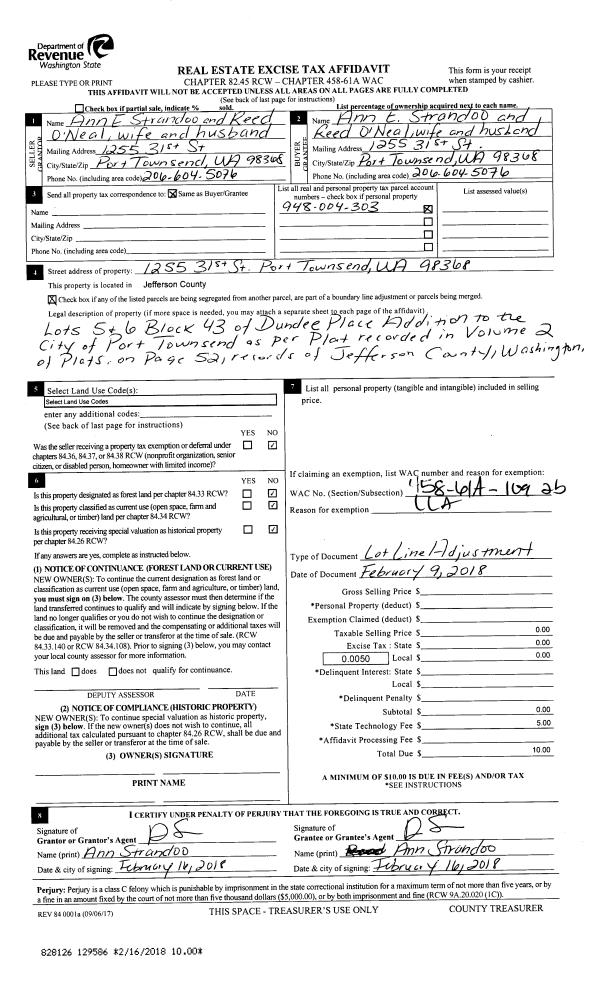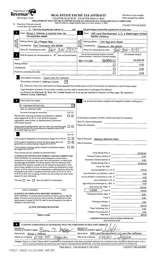 | 3 | 10/25/2018 | SWD | Statutory Warranty Deed | | STANLEY O AND LINDA A PETERSON | | | | 131453 | |