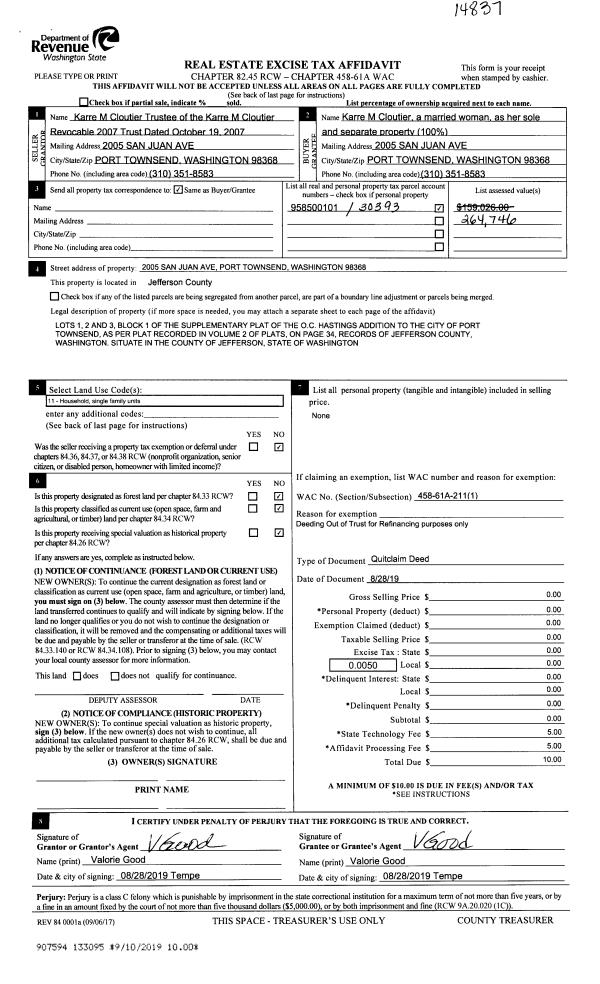 | Mailing Address: | DEBORAH AMSDILL PO BOX 723 FORKS, WA 98331-0723 | % Ownership: | 100.0000000000% |