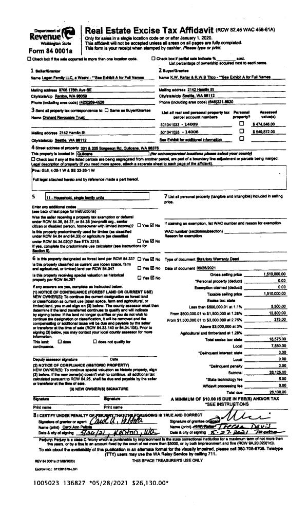 | 2 | 08/04/2013 | BSD | Bargain and Sale Deed | RAYONIER TMBLND OPER CO L P | TIMBERLANDS HOLDING COMPANY WASHINGTON INC | | | | 119758 | |