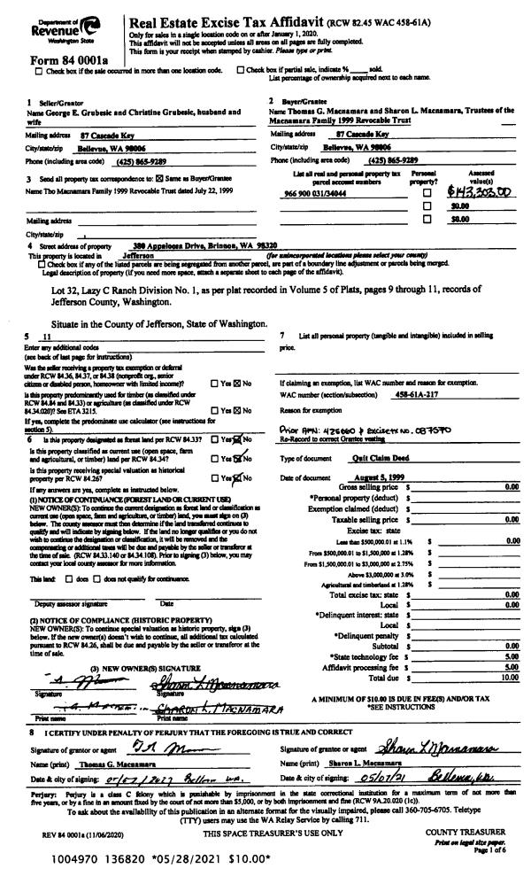| 3 | 08/04/2013 | BSD | Bargain and Sale Deed | RAYONIER TMBLND OPER CO L P | TIMBERLANDS HOLDING COMPANY WASHINGTON INC | | | | 119758 | |