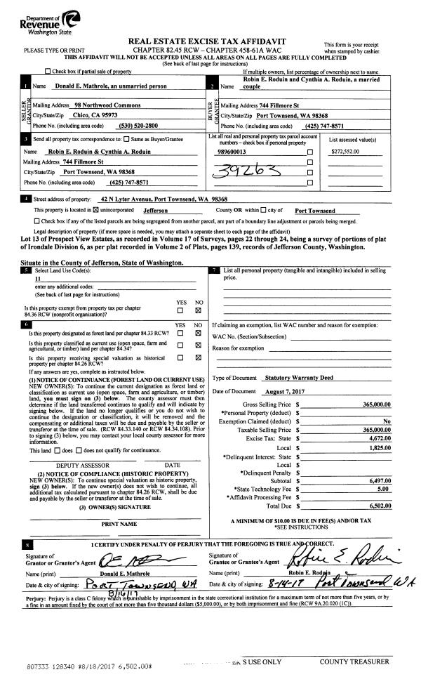 | 5 | 05/07/2004 | SWD | Statutory Warranty Deed | POWERS, GEORGE W | DU MARS, JASON C/MOLLY E | 0 | 0 | $37,500.00 | 100233 | 0 |