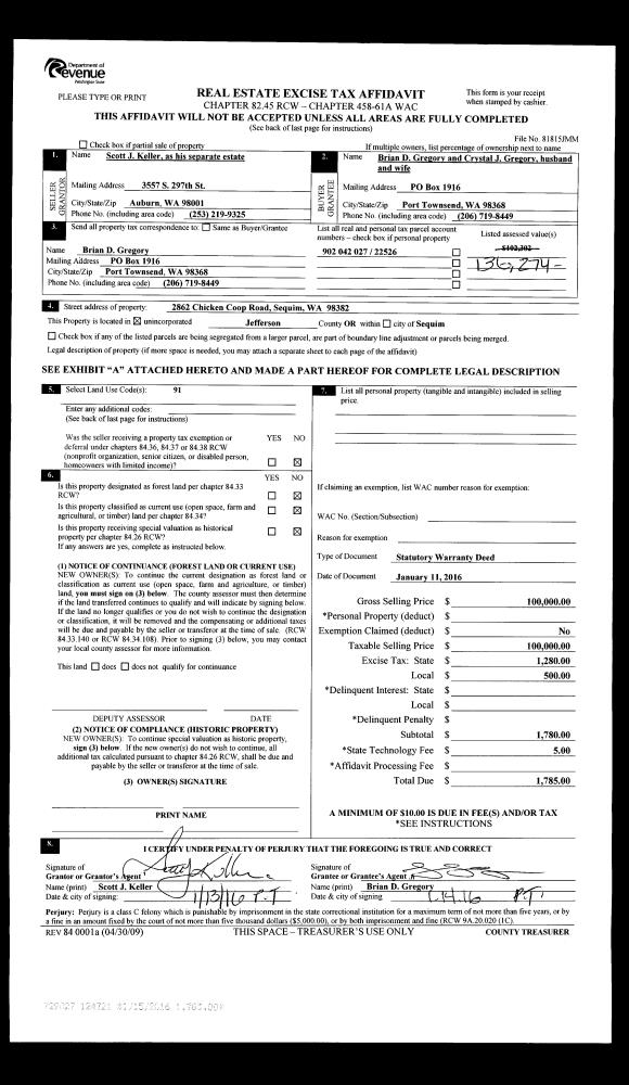 | Mailing Address: | PENELOPE TRIPP TRUSTEE 1710 SHINE RD PORT LUDLOW, WA 98365 | % Ownership: | 100.0000000000% |