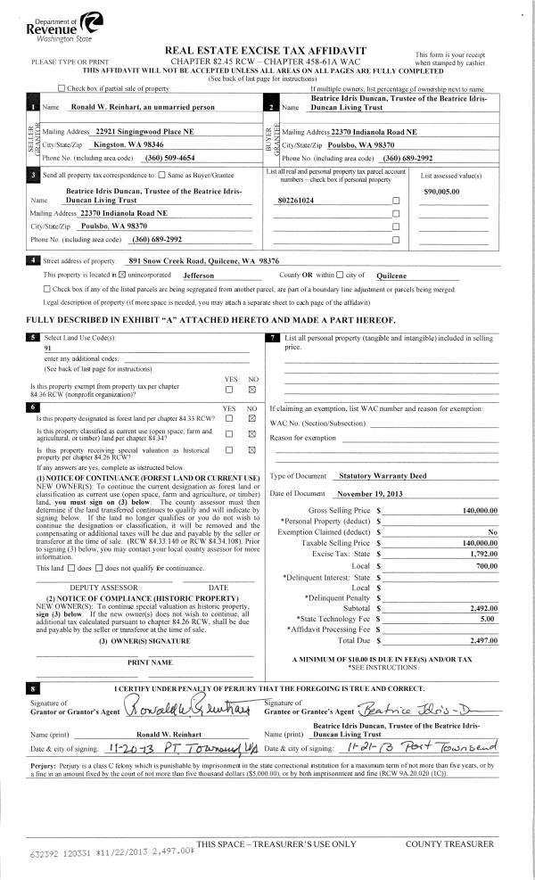 | Mailing Address: | 1596 SHINE RD PORT LUDLOW, WA 98365-9512 | % Ownership: | 100.0000000000% |