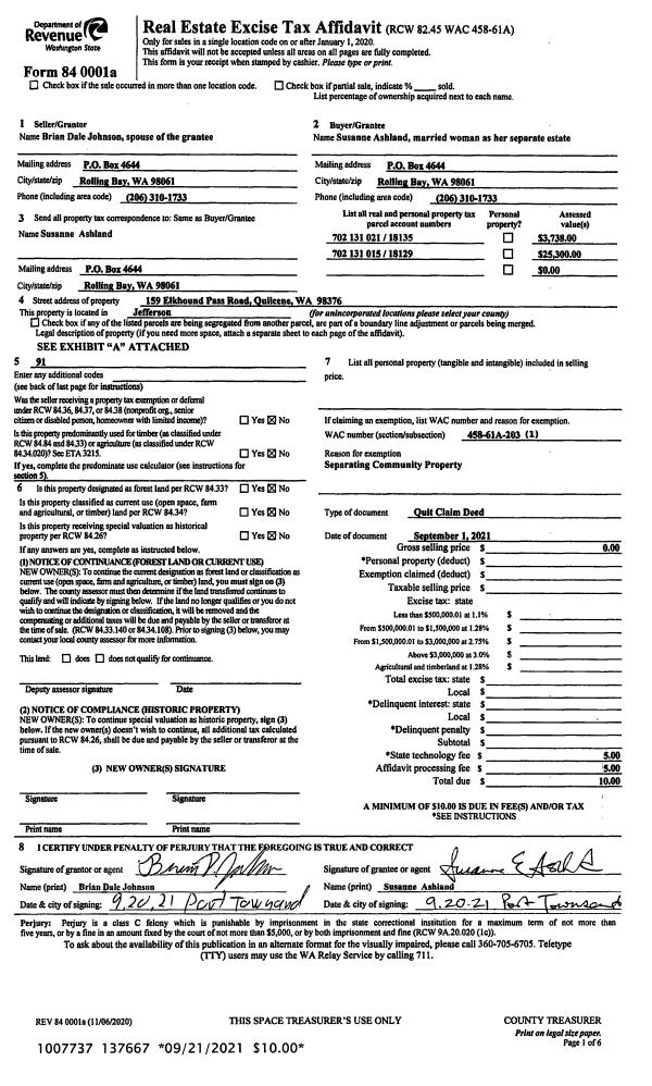 | Mailing Address: | PATRICIA A MARQUIS 1662 SHINE ROAD PORT LUDLOW, WA 98365 | % Ownership: | 100.0000000000% |