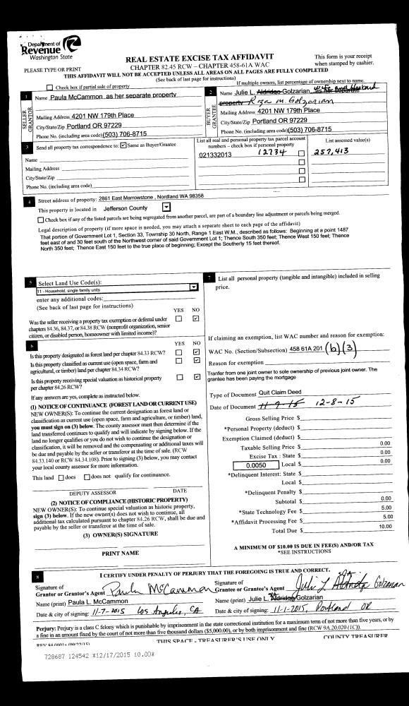 | 1 | 08/22/2003 | QCD | Quit Claim Deed | MUGGLI, URS RICHARD | MUGGLI, URS RICHARD/CONNIE | 0 | 0 | $0.00 | 98131 | 0 |