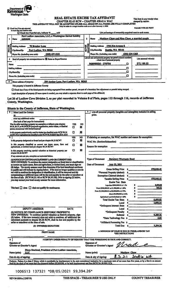 | Mailing Address: | 214 EAGLEVIEW LN PORT LUDLOW, WA 98365 | % Ownership: | 100.0000000000% |