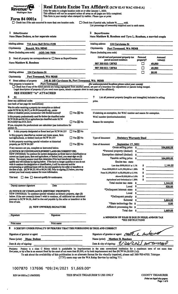 | Mailing Address: | DENNIS M & MICHELLE L KELLEY TRUSTEES 161 ADMIRALS ROW PORT LUDLOW, WA 98365-9550 | % Ownership: | 100.0000000000% |