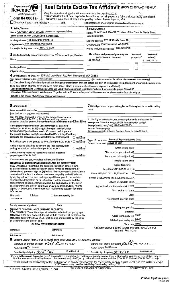 | Mailing Address: | KIM A & KATHRYN A NICHOLAS TRUSTEES 9220 S 237TH PL KENT, WA 98031-2978 | % Ownership: | 100.0000000000% |