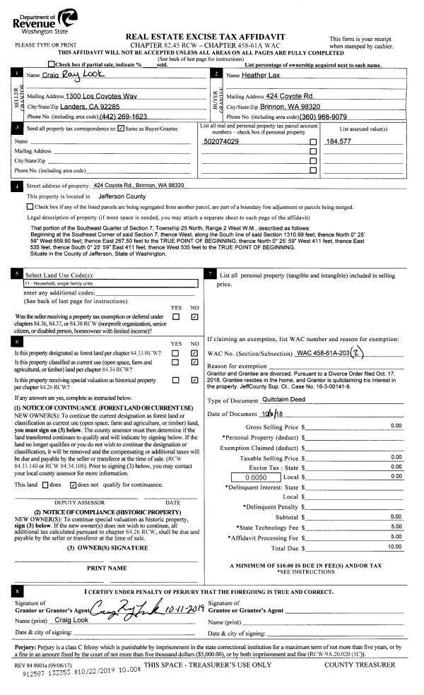 | 1 | 08/25/2020 | SWD | Statutory Warranty Deed | DOUGLAS M THURSTON TRSTE | EMPIRE ELECTRIC INC | | | $50,000.00 | 134987 | |