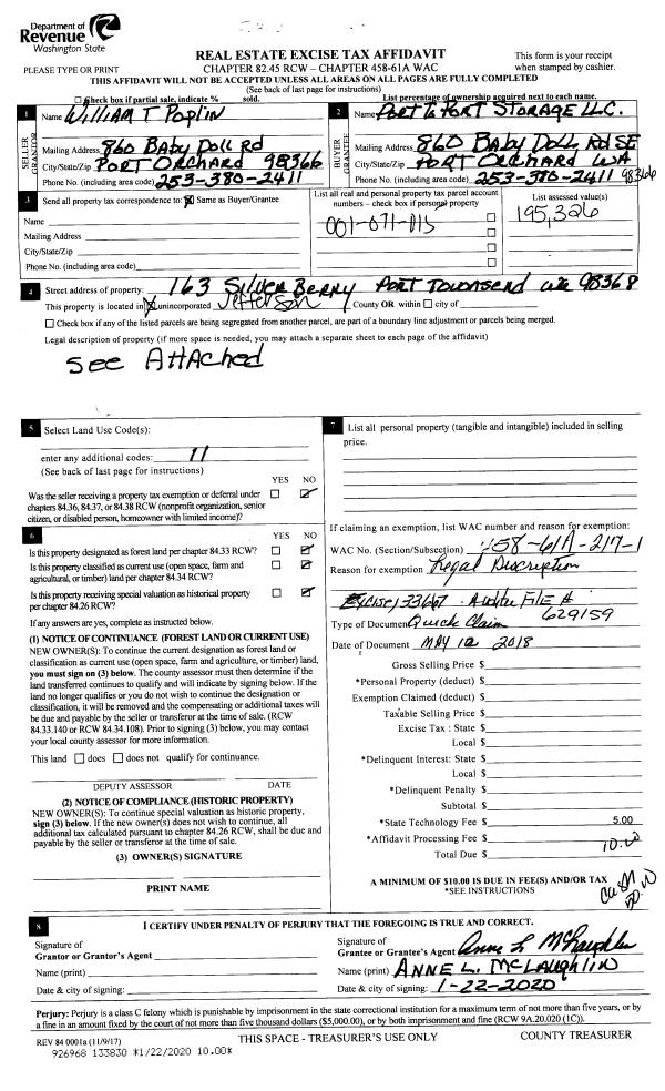 | 1 | 3440-1525F | Medium to High Bank Wtrfrt along Hood Canal | 0.0000 | 0.00 | 0.00 | 0.00 | 0.00 | $174,930 | $0 |