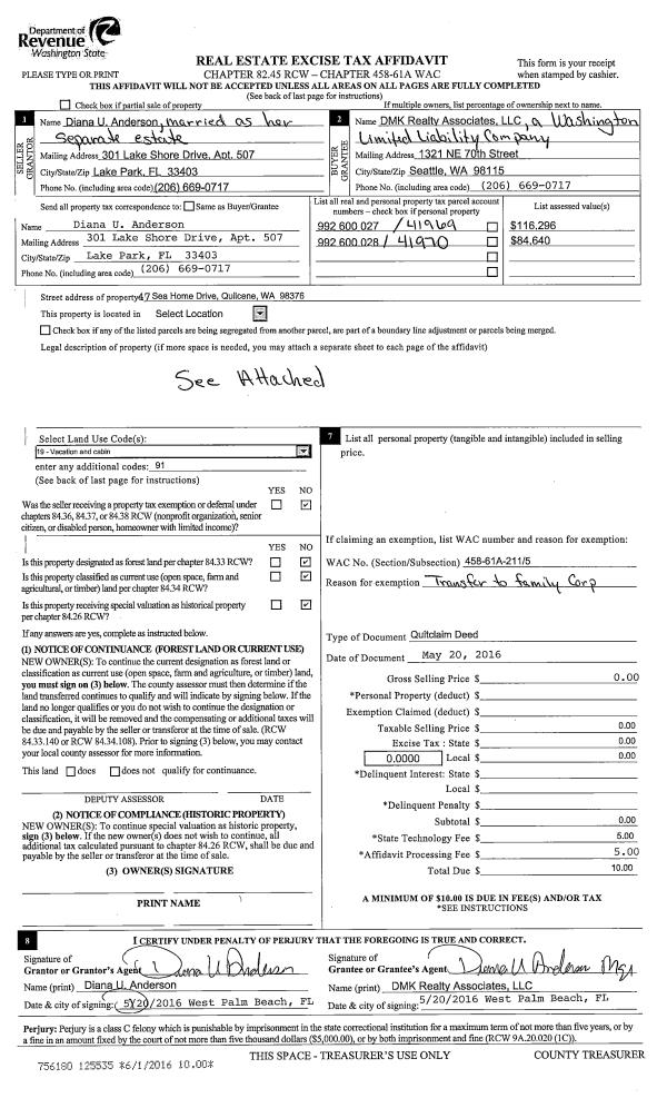 | Mailing Address: | 1902 EGG & I RD CHIMACUM, WA 98325 | % Ownership: | 100.0000000000% |