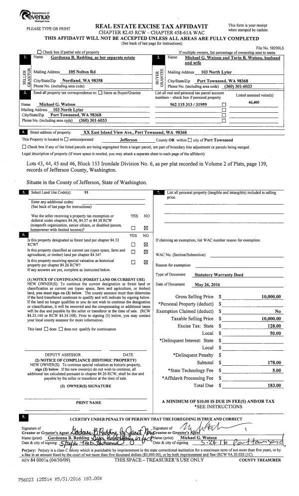| 1 | 12/21/2011 | SWD | Statutory Warranty Deed | PETERSON, JOHN W ESTATE O | PHILLIPS, TIMOTHY | 0 | 0 | $80,000.00 | 116998 | 0 |