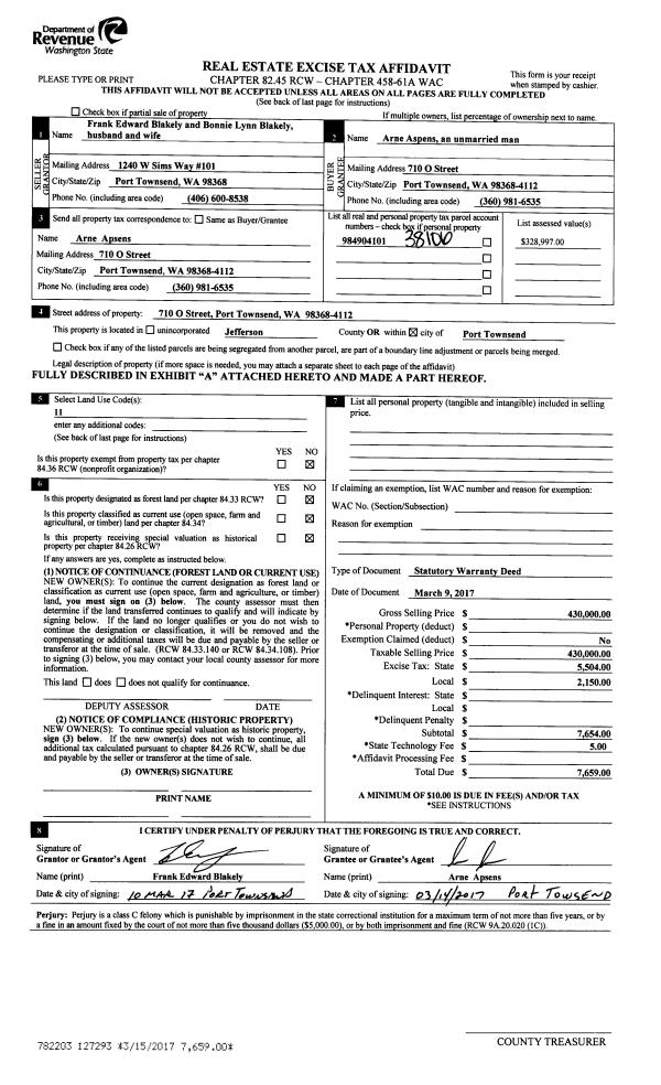| 1 | 07/13/2017 | SWD | Statutory Warranty Deed | DANIEL G BAKER AND JILL I BAKER | LAURIE R MCKENZIE | | | $284,000.00 | 128149 | |