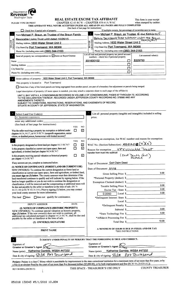 | Mailing Address: | 1524 QUINCY ST PORT TOWNSEND, WA 98368-5322 | % Ownership: | 100.0000000000% |