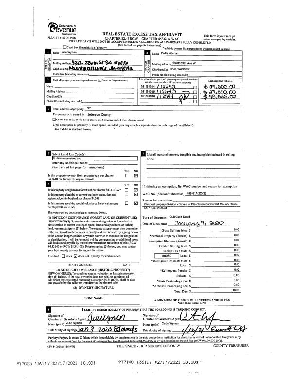 | 4 | 06/17/2013 | TRED | Trustee Deed | NORTHWEST TRUSTEE SERVICES INC | FEDERAL HOME LOAN MORTGAGE CORP | | | | 119436 | |