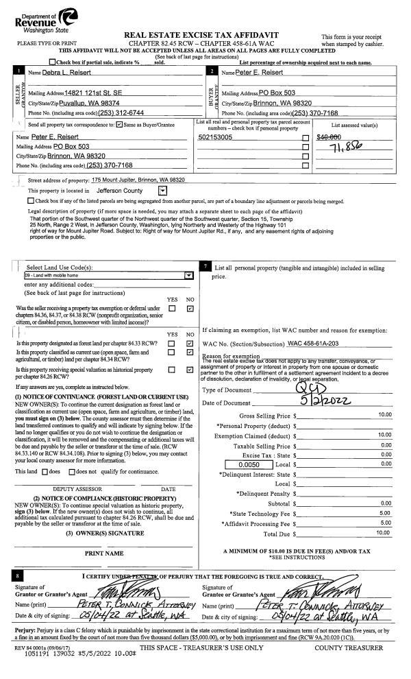 | Mailing Address: | 5150 CENTER RD CHIMACUM, WA 98325-9708 | % Ownership: | 100.0000000000% |