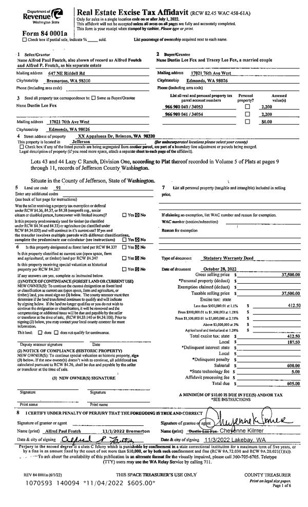 | 2 | 1577A | Terr/Mtn/No View <6 Acres | 0.7000 | 30492.00 | 0.00 | 0.00 | 0.00 | $5,968 | $0 |