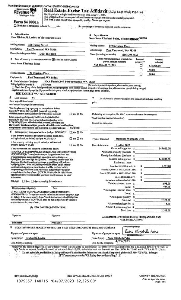 | 1 | 07/24/2024 | SWD | Statutory Warranty Deed | RICHARD S DE LA TOUR | JENNIFER JAMES | | | $695,000.00 | 142967 | |