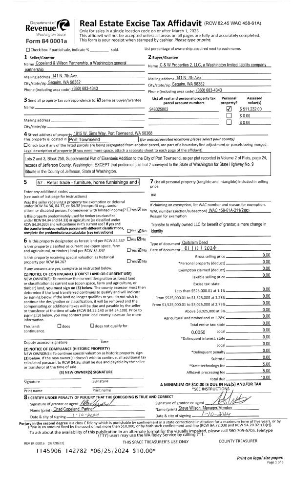 | Mailing Address: | 124 LARSON LAKE RD CHIMACUM, WA 98325 | % Ownership: | 100.0000000000% |