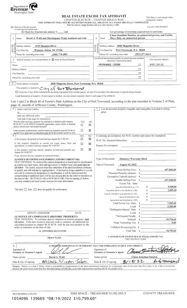 | Mailing Address: | 1205 W EGG & I RD CHIMACUM, WA 98325-7740 | % Ownership: | 100.0000000000% |