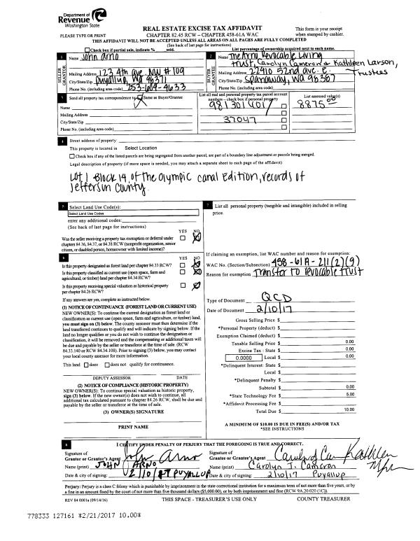 | 2 | 05/31/2017 | SWD | Statutory Warranty Deed | | | | | | 128221 | |